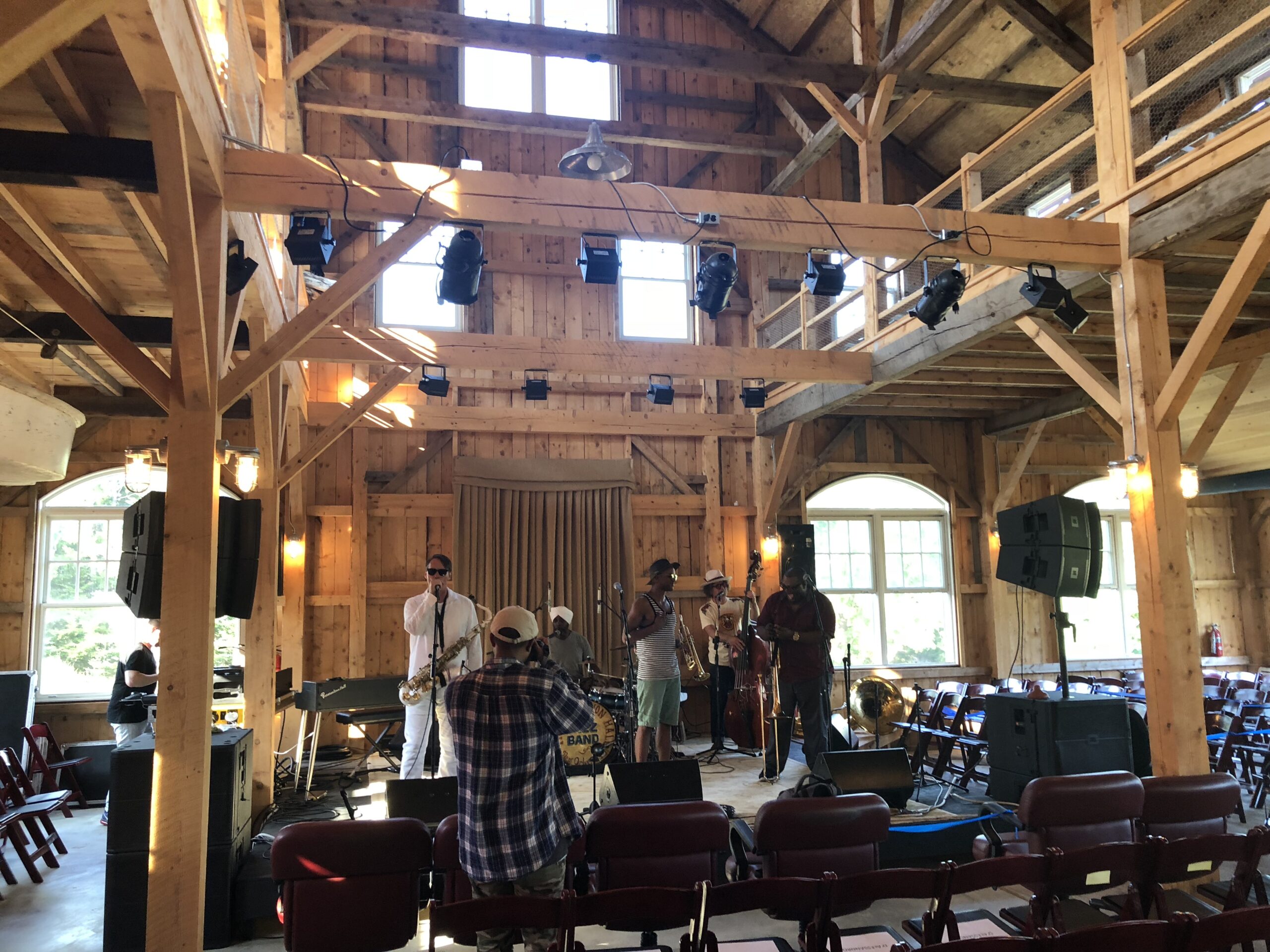 Professional sound systems, including microphones, mixers, and speakers